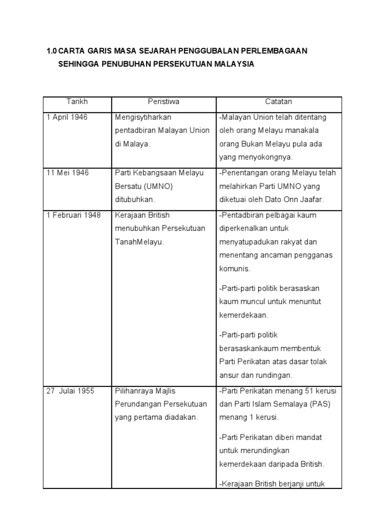 Carta Garis Masa Sejarah Penggubalan Perlembagaan Sehingga Penubuhan Persekutuan Malaysia Pdf